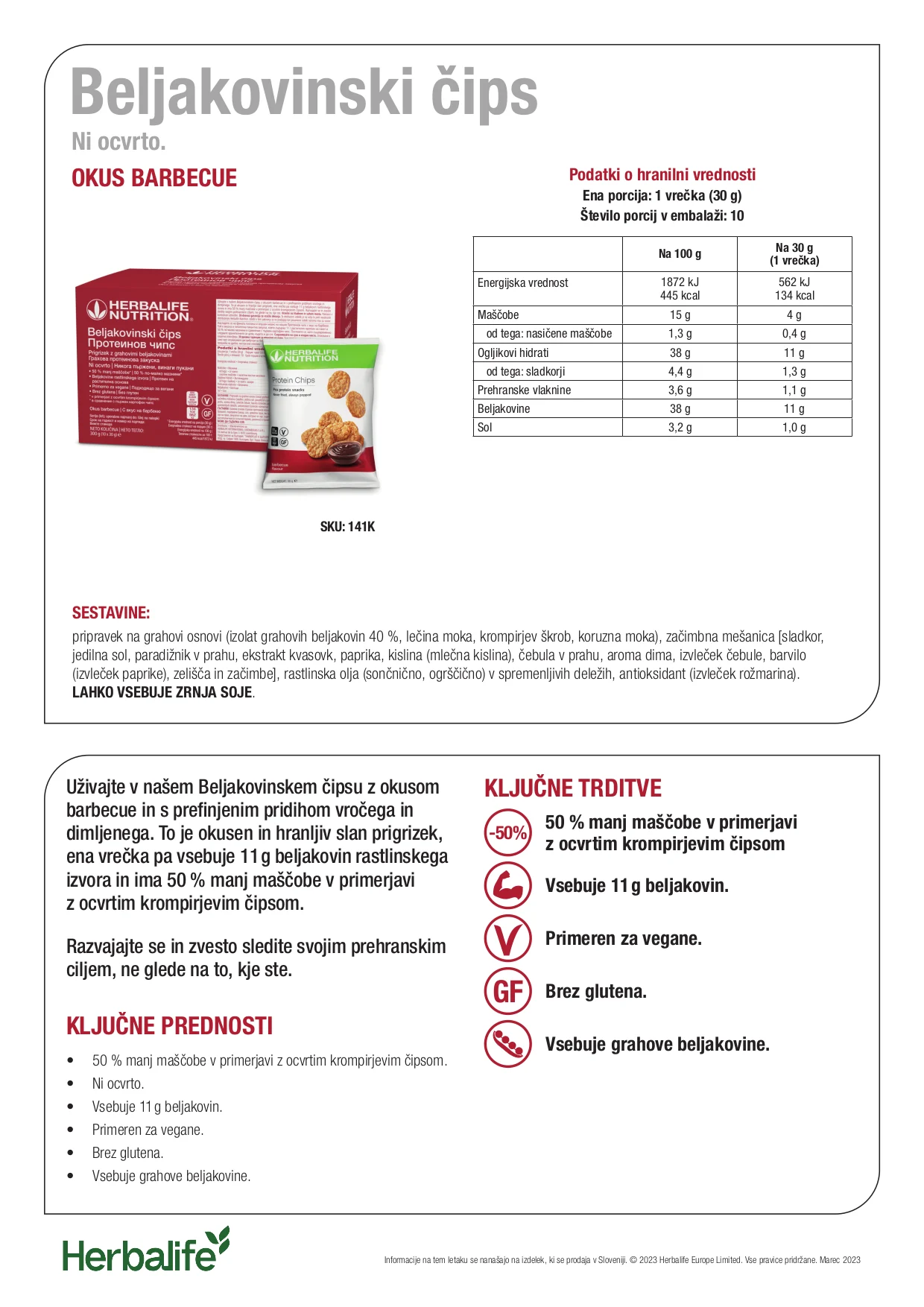 Koliko beljakovin vsebuje Herbalife beljakovinski čips?